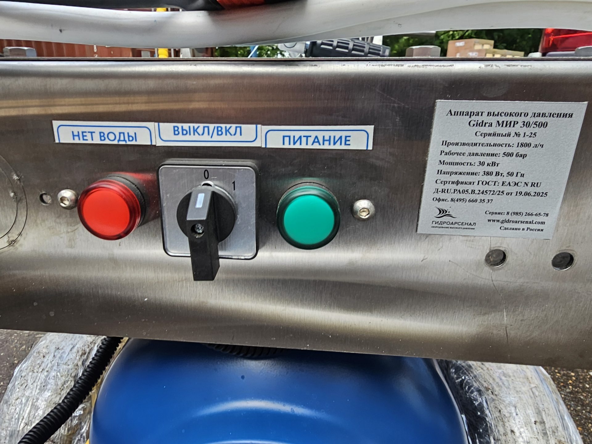 - Лампочка индикации отсутствия воды на входе в АВД (красная).