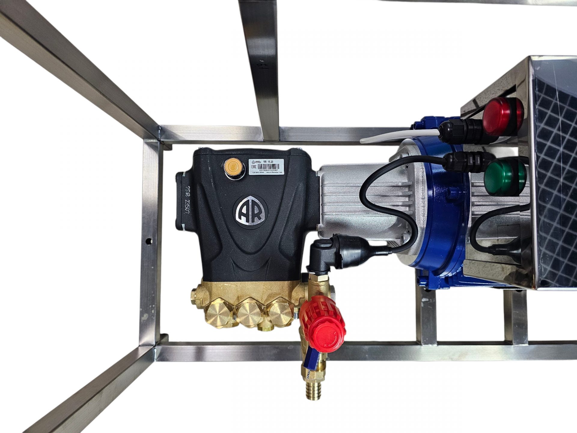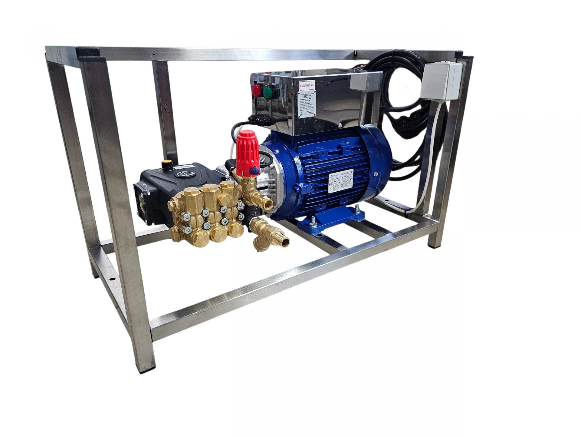 Один из самых надежных, неприхотливых и недорогих в использовании помп с рабочими характеристиками 15 литров в минуту 200 бар. Имеет 24 мм вал и подсоединение к электродвигателю диаметр 75мм. Данный насос отлично зарекомендовал себя на потоковых автомойках г. Москвы. Запасные части и расходные материалы всегда в наличии на нашем складе.