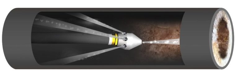 Гидродинамическая прочистка канализационных труб — это способ очистки трубопроводов с помощью воды, подаваемой под высоким давлением при помощи профессионального аппарата высокого давления. Поток воды смывает минерально-органические отложения, жировые наросты и плотный мусор с внутренних стенок труб.