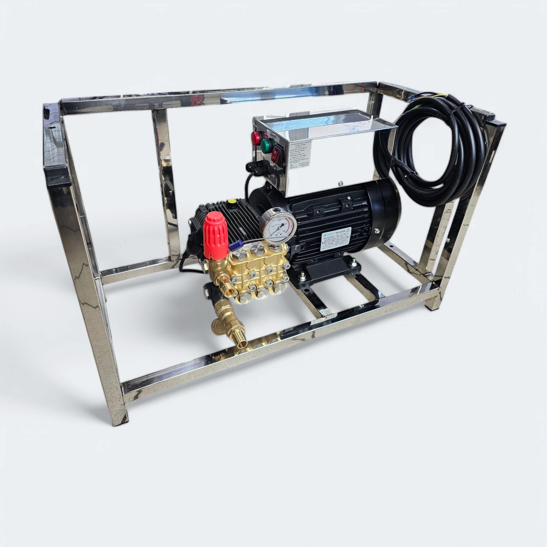 Gidra F1 16/100 LT для морской воды комплектуется как регулятором давления типа Bay-pass (закрытый или открытый), так и датчиком total stop – автоматическое отключение электродвигателя после отпускания курка. Соединение между насосом и электродвигателем фланцевое жесткое «вал в вал», которое обеспечивает полноценную передачу крутящего момента на насос. Высокопрочная рама из нержавеющей стали обеспечивает надежность конструкции при установке 3-4 аппаратов вертикально в ряд.