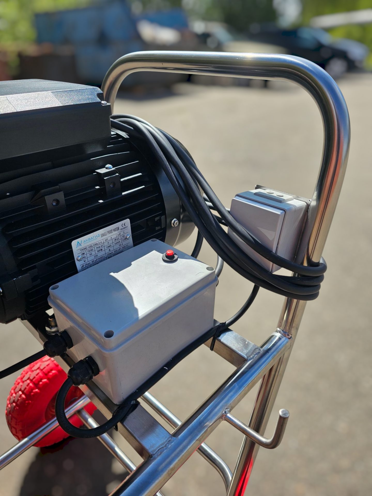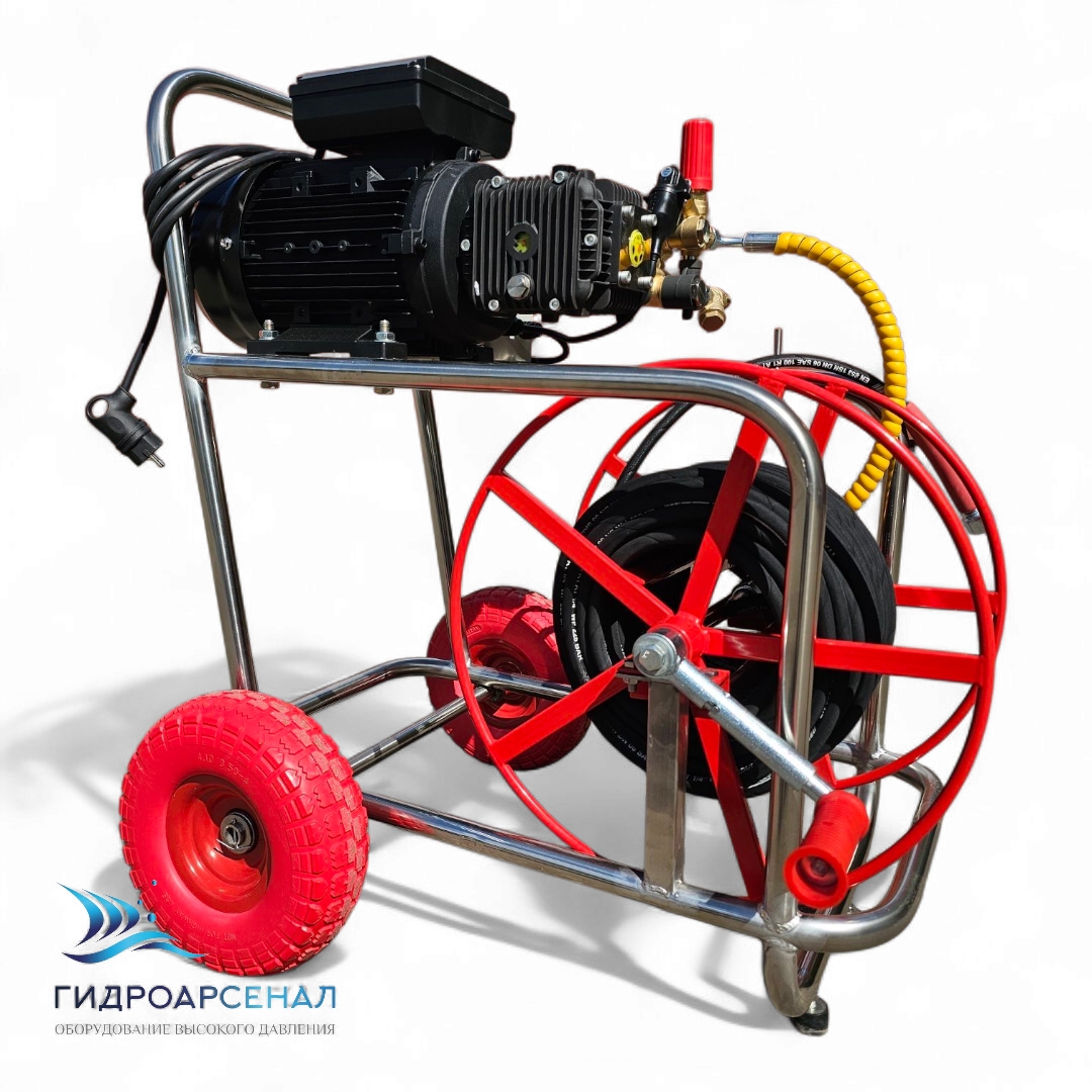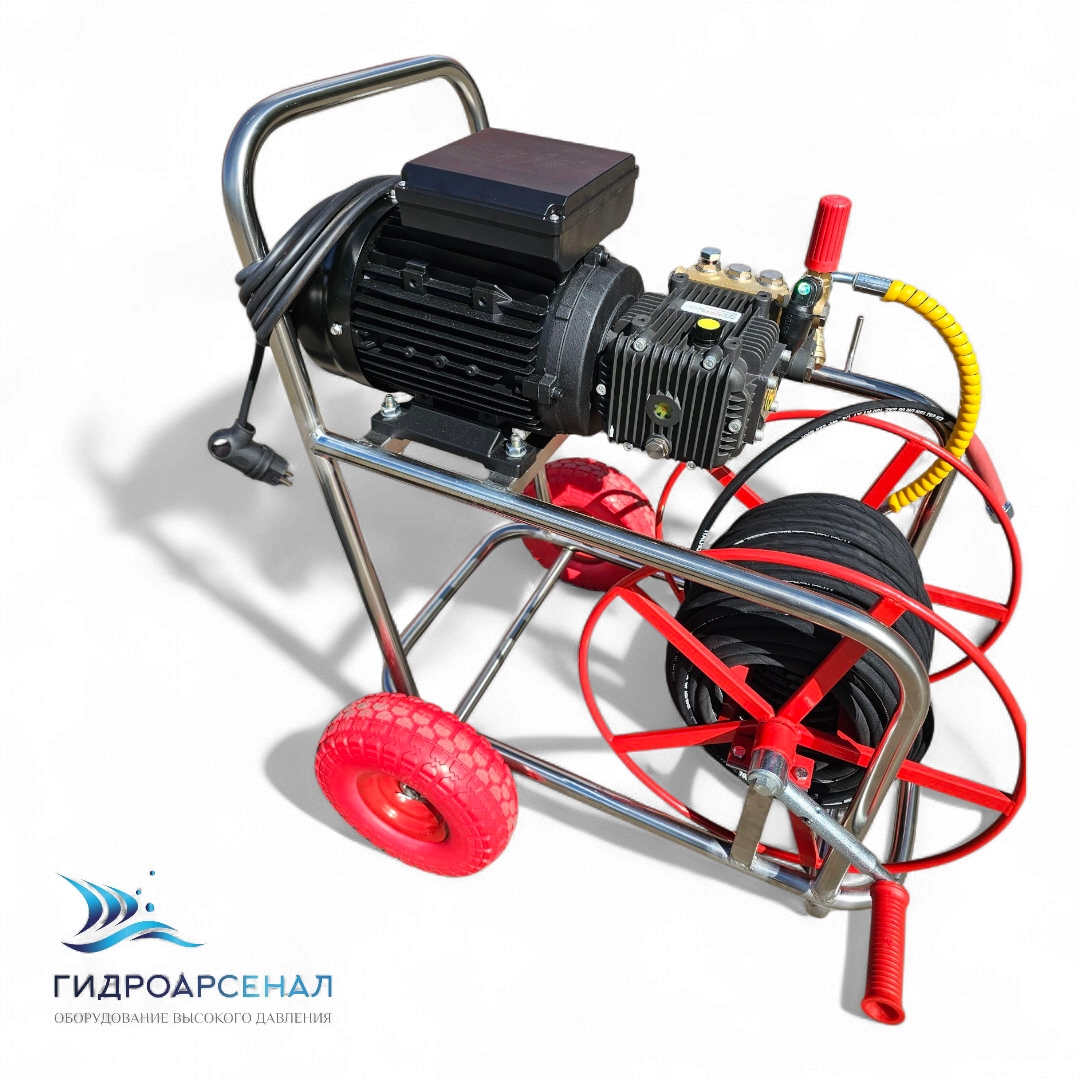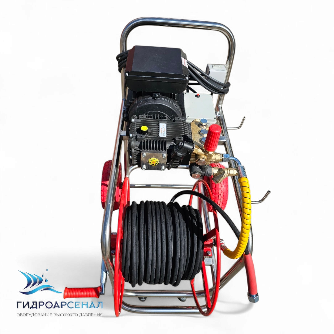Высокопрочная рама из нержавеющей стали со стальным барабаном на 50м РВД, обеспечивает надежность конструкции в сочетании с промышленными колесами D250.