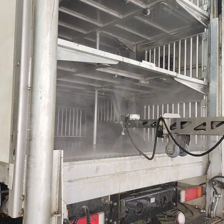 Автоматическая система мойки внутренней поверхности кузова прицепов и контейнеров является безопасной и эффективной системой для внутренней мойки транспортных средств. Сокращение времени обработки на 60% по сравнению с процессами ручной мойки, автоматический контроль дезинфицирующих средств, высочайшая производительность и надежная конструкция. Оборудование часто используется для мойки скотовозов, животновозов.