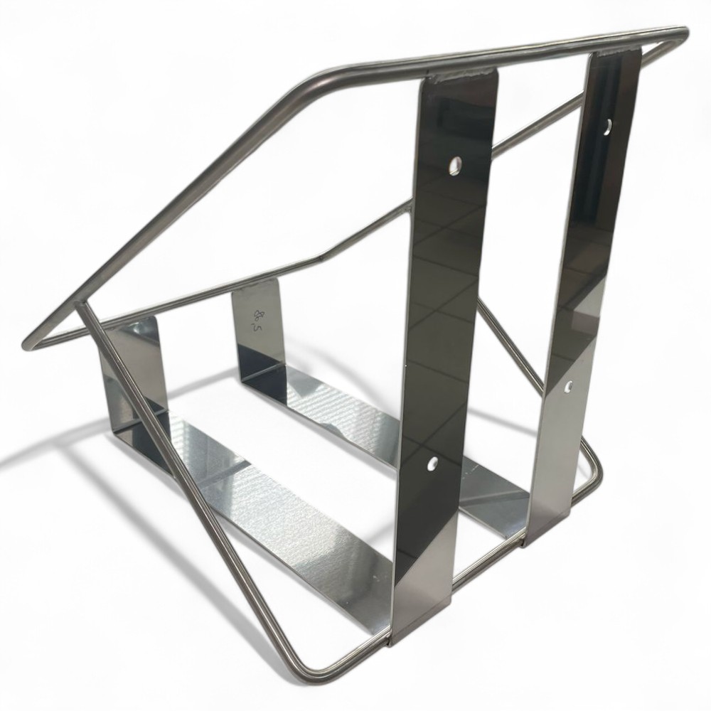 Держатель предназначен для установки в нем канистр и удобного наливания химии в пенную насадку. Устанавливается на стену, имеет как практическое удобство, так и презентабельный внешний вид.