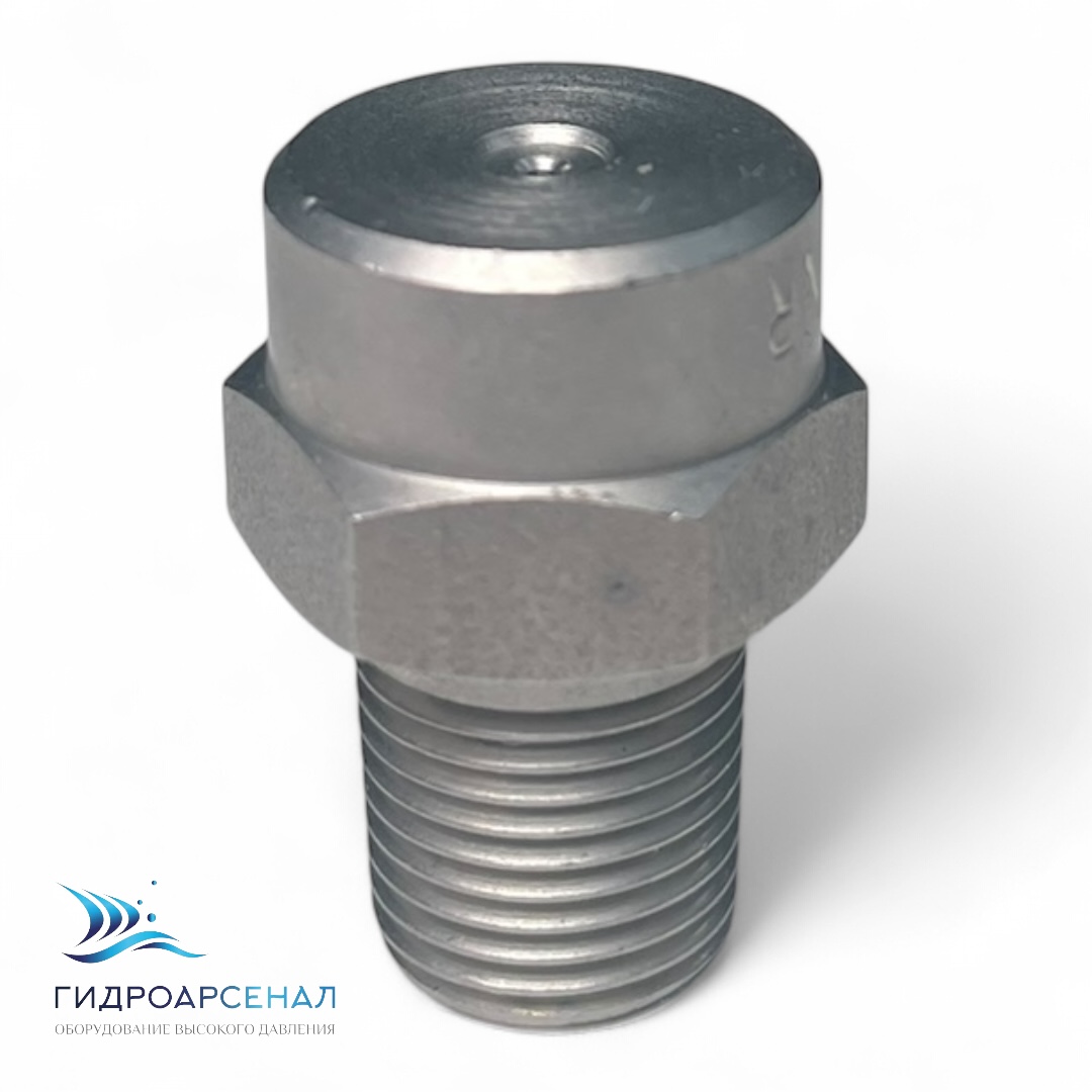 Форсунка 00015 1/8 BSPT (AISI 416) предназначена для равномерного распыления струи воды под высоким давлением.