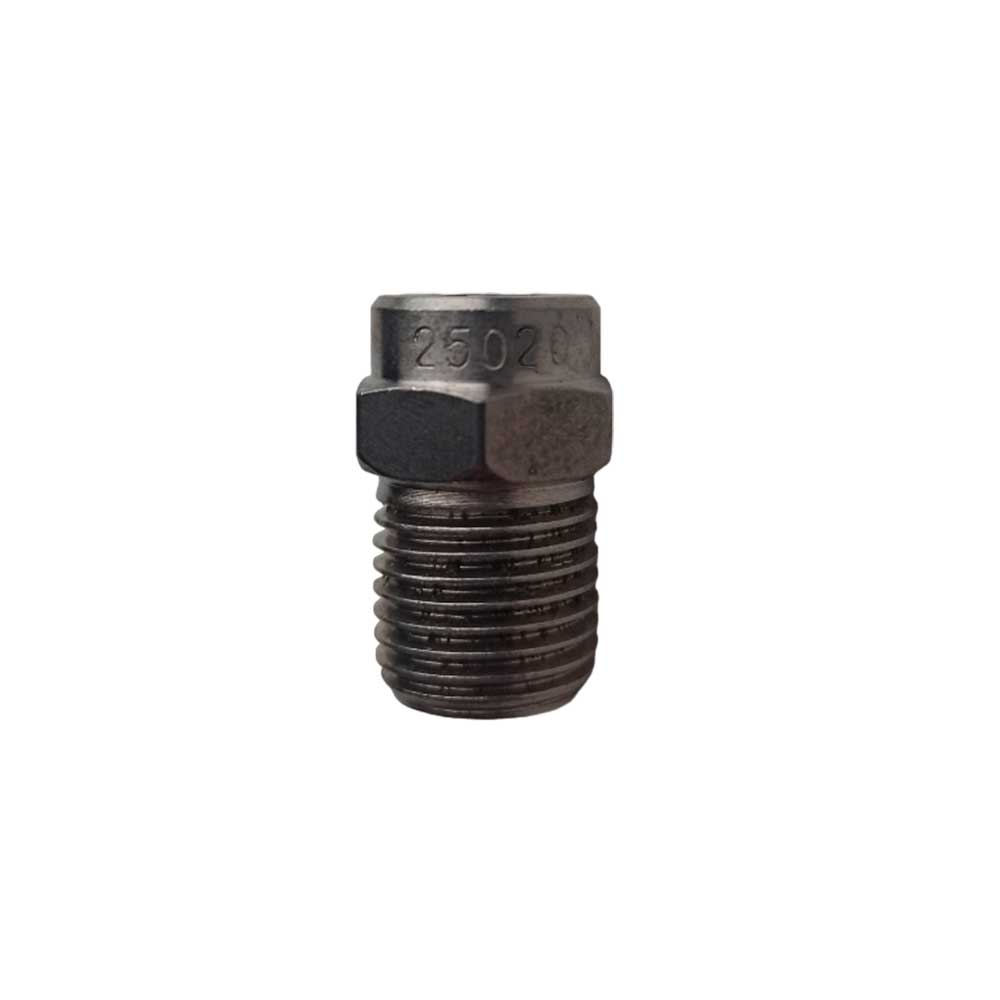 Форсунка резьба конус 1/4″, 020 размер сопла, 25 градусов угол распыла, предназначена для работы с аппаратами высокого давления и распыления чистой воды или состава с моющим средством, изготовлена из нержавеющей стали — прочного и долговечного материала, не склонного к коррозии. Имеет угол распыла и размер, зависящий от давления и производительности насоса.