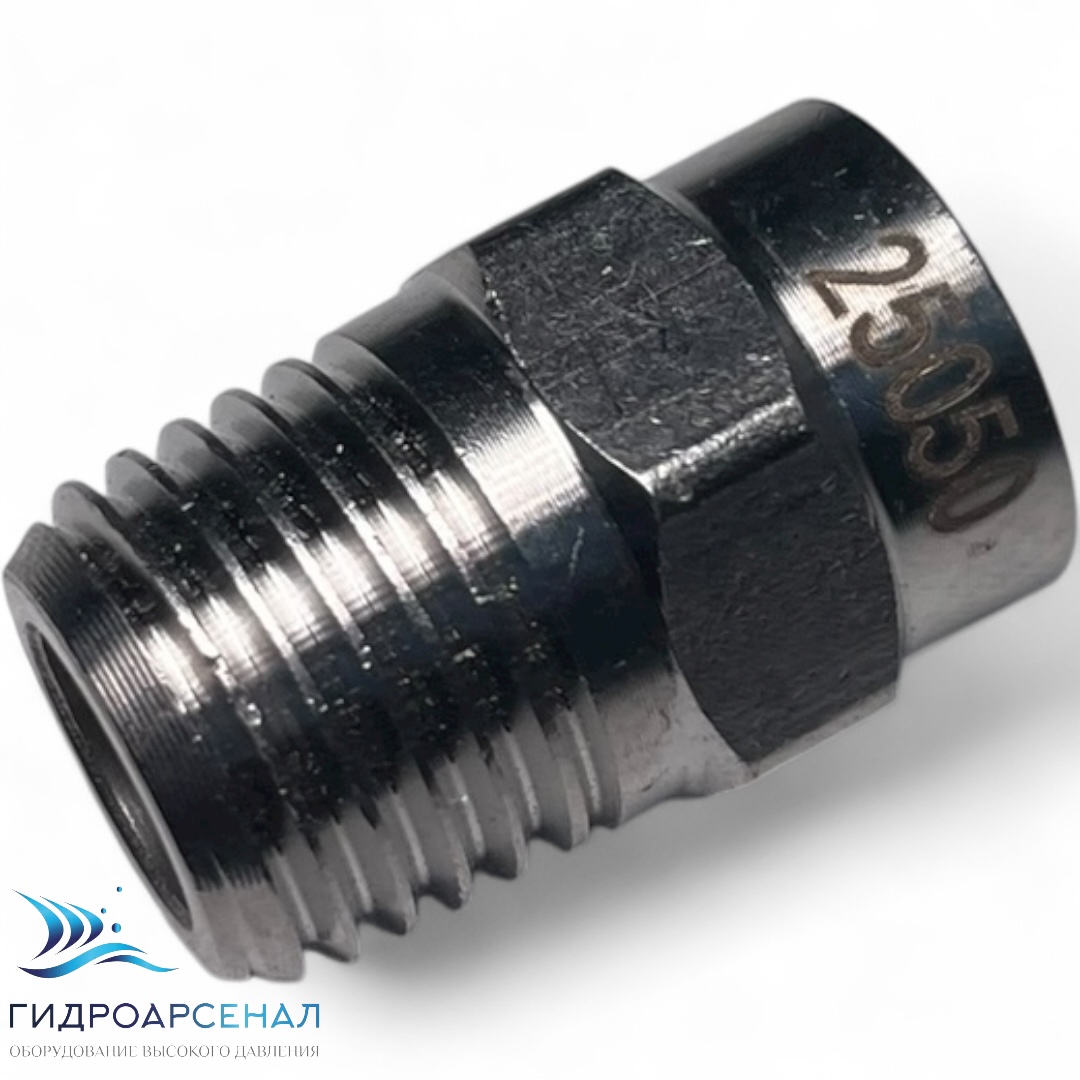 Форсунка 25050 1/4ш предназначена для распыления жидкостей под высоким давлением с помощью аппарата высокого давления.