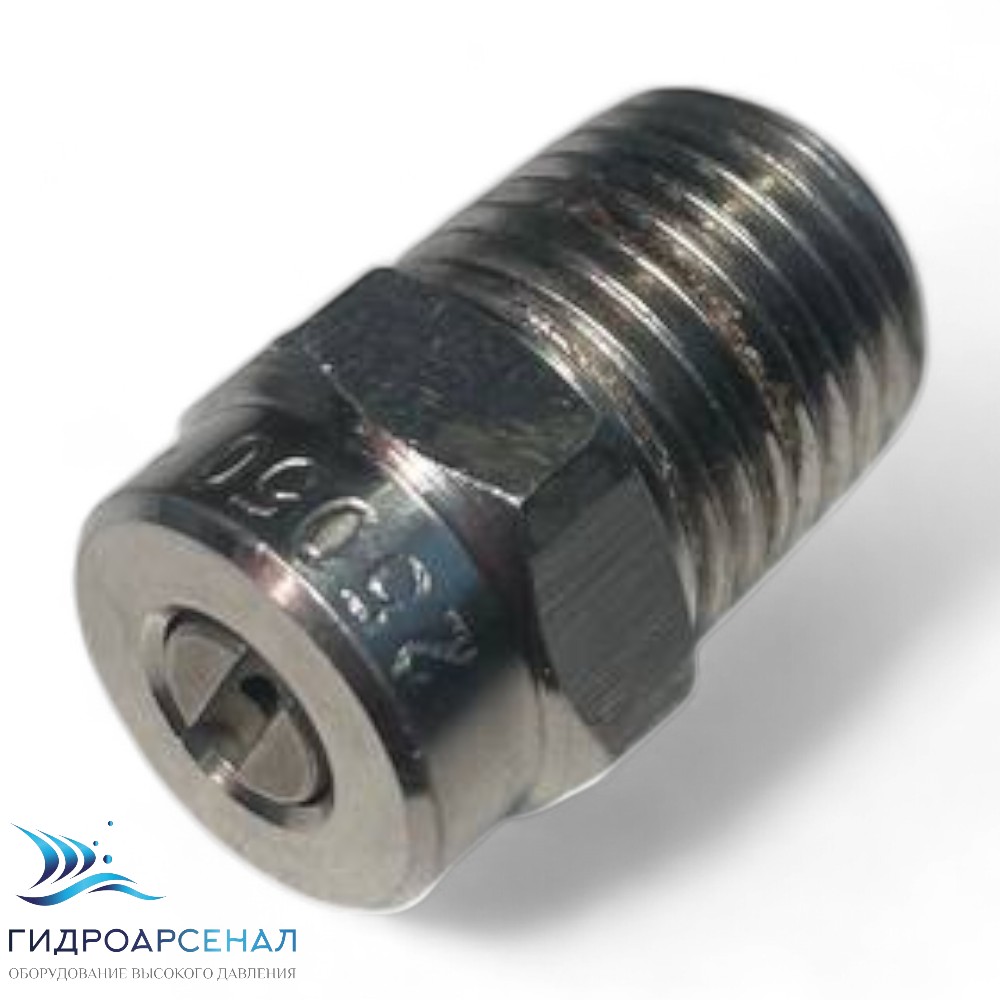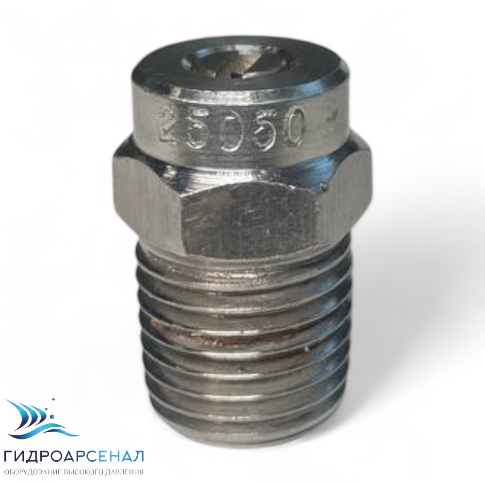 Форсунка 25050 1/4ш предназначена для распыления жидкостей под высоким давлением с помощью аппарата высокого давления.