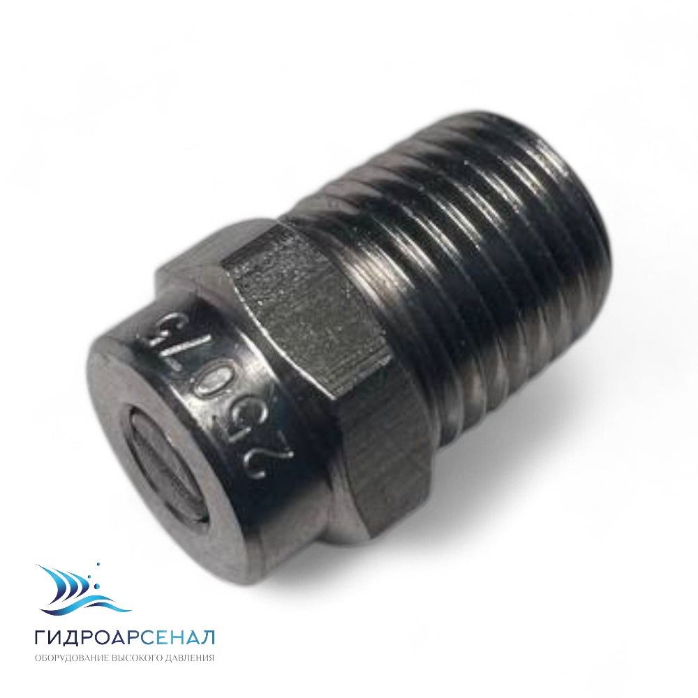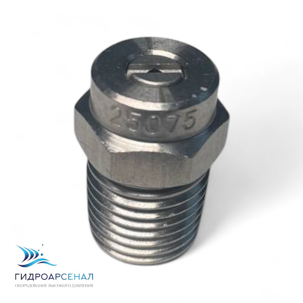 Форсунка 25075 1/4ш предназначена для распыления жидкостей под высоким давлением с помощью аппарата высокого давления.