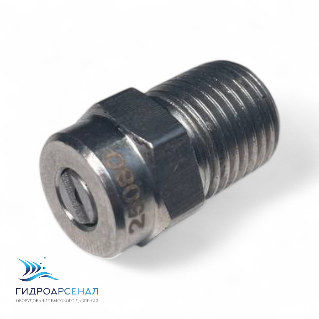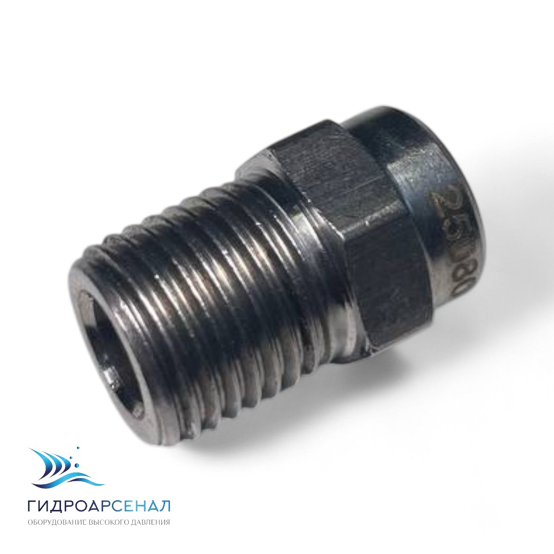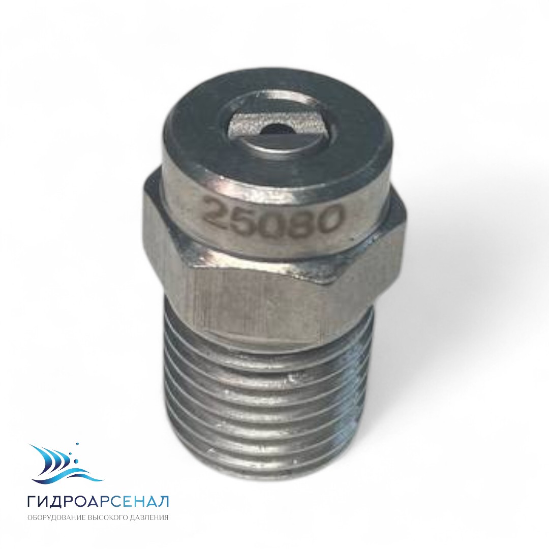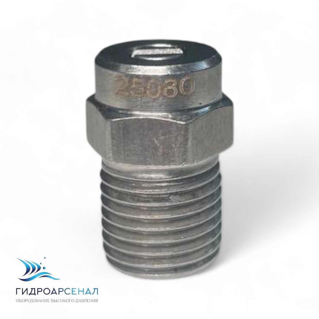 Форсунка 25080 1/4ш предназначена для распыления жидкостей под высоким давлением с помощью аппарата высокого давления.