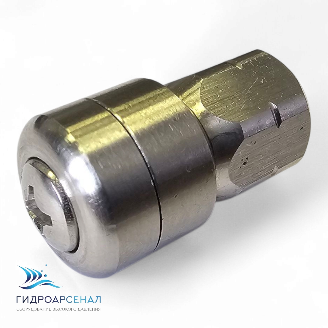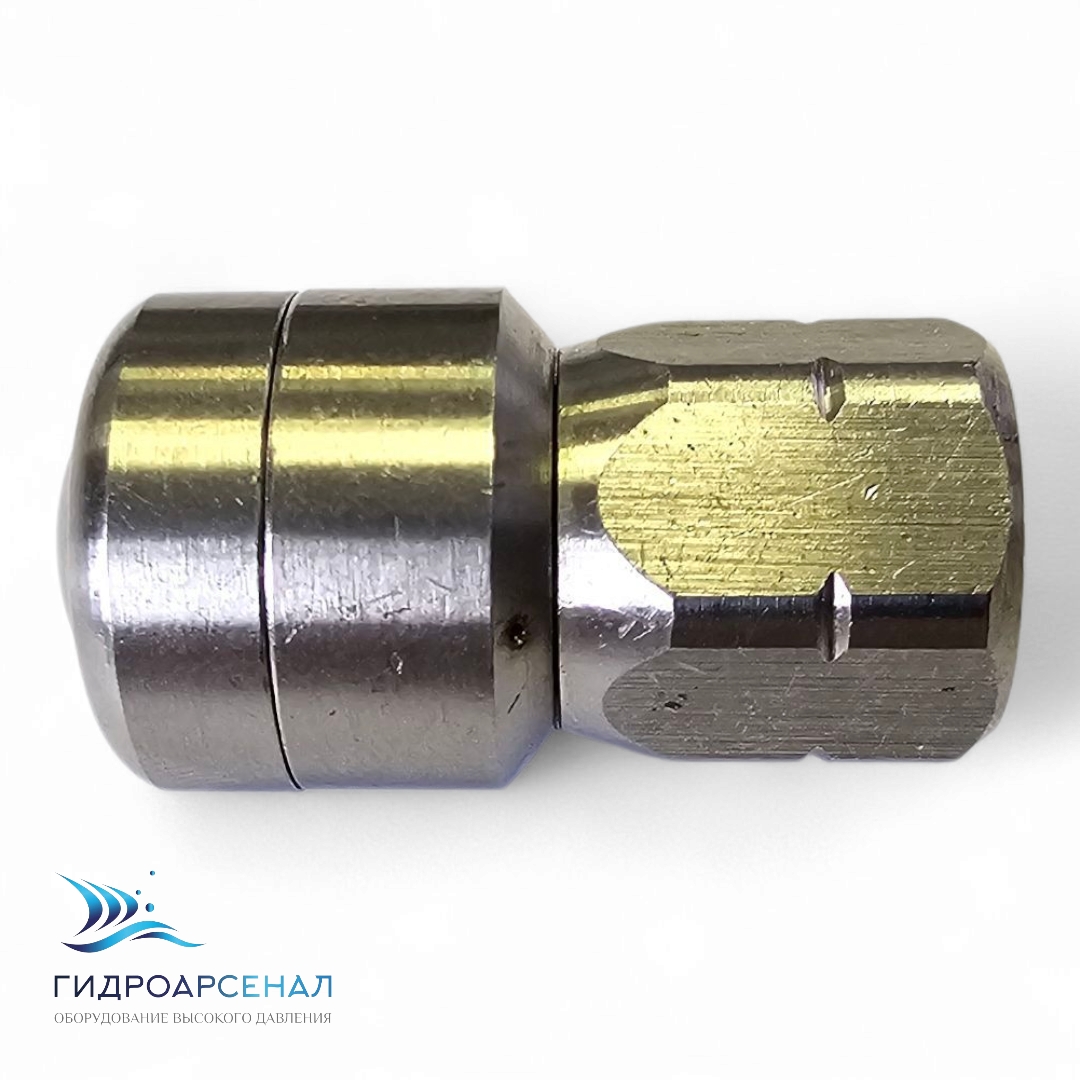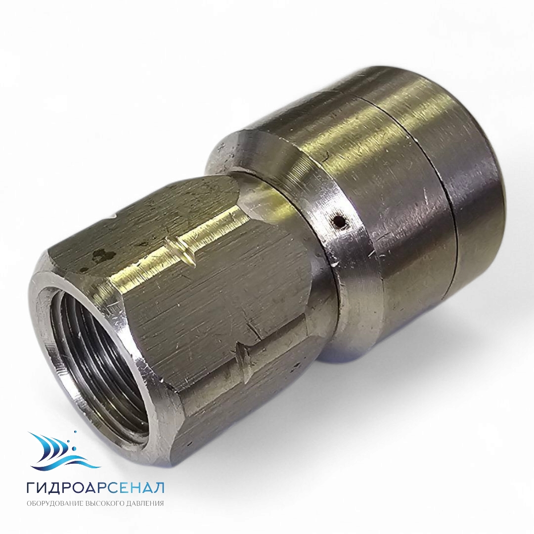 Фреза вращающаяся для очистки внутренней поверхности труб высоким давлением до 500 бар. Имеет 3 отверстия назад под углом 45 градусов, благодаря чему самостоятельно двигается вперед в трубе, размывая все отложения.