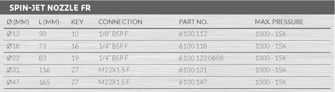 Форсунка предназначена для использования на гидродинамических машинах с рабочим давлением до 1000 бар.