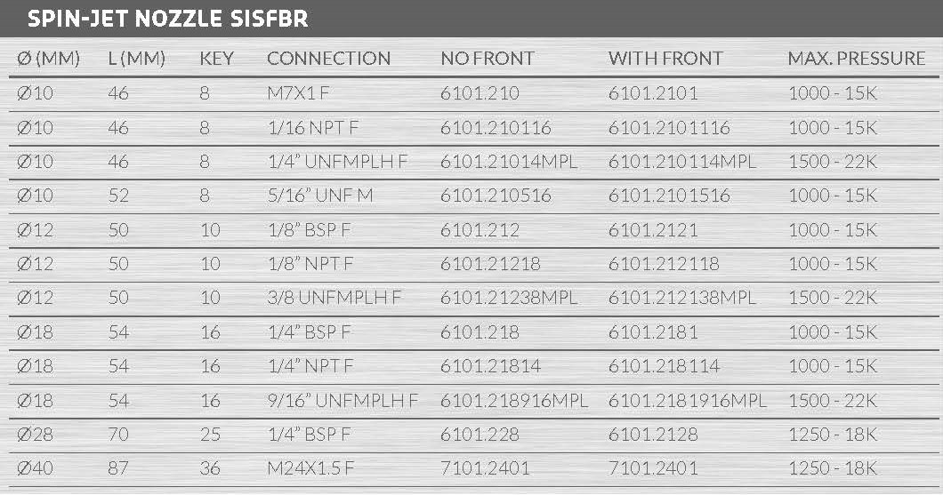 Форсунка роторная (пробивная-очистная) SISFBR, до 1500 бар, 1х0°, 2х20° вперед, 2х45° назад, 2х90° (Нидерланды)
