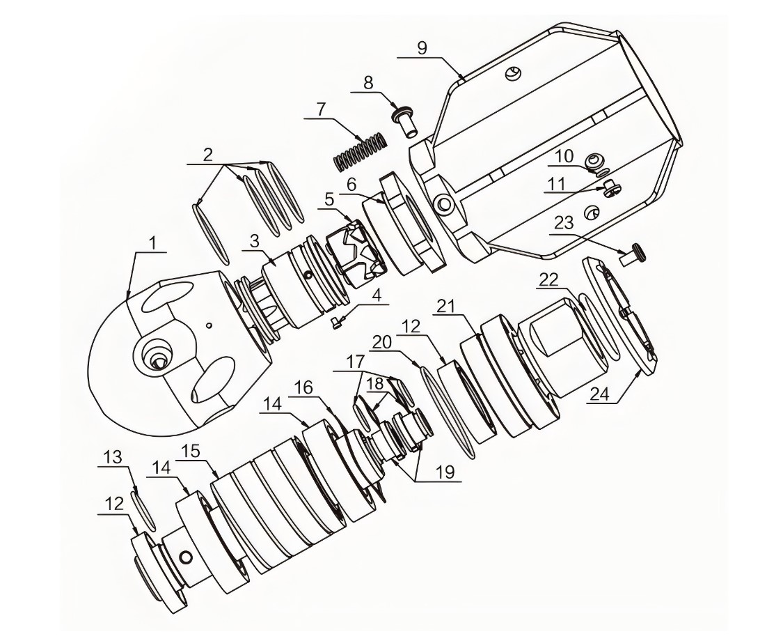 Фреза турбо вращающаяся PGD для очистки трубок давлением до 1500 бар с центрующими элементами.