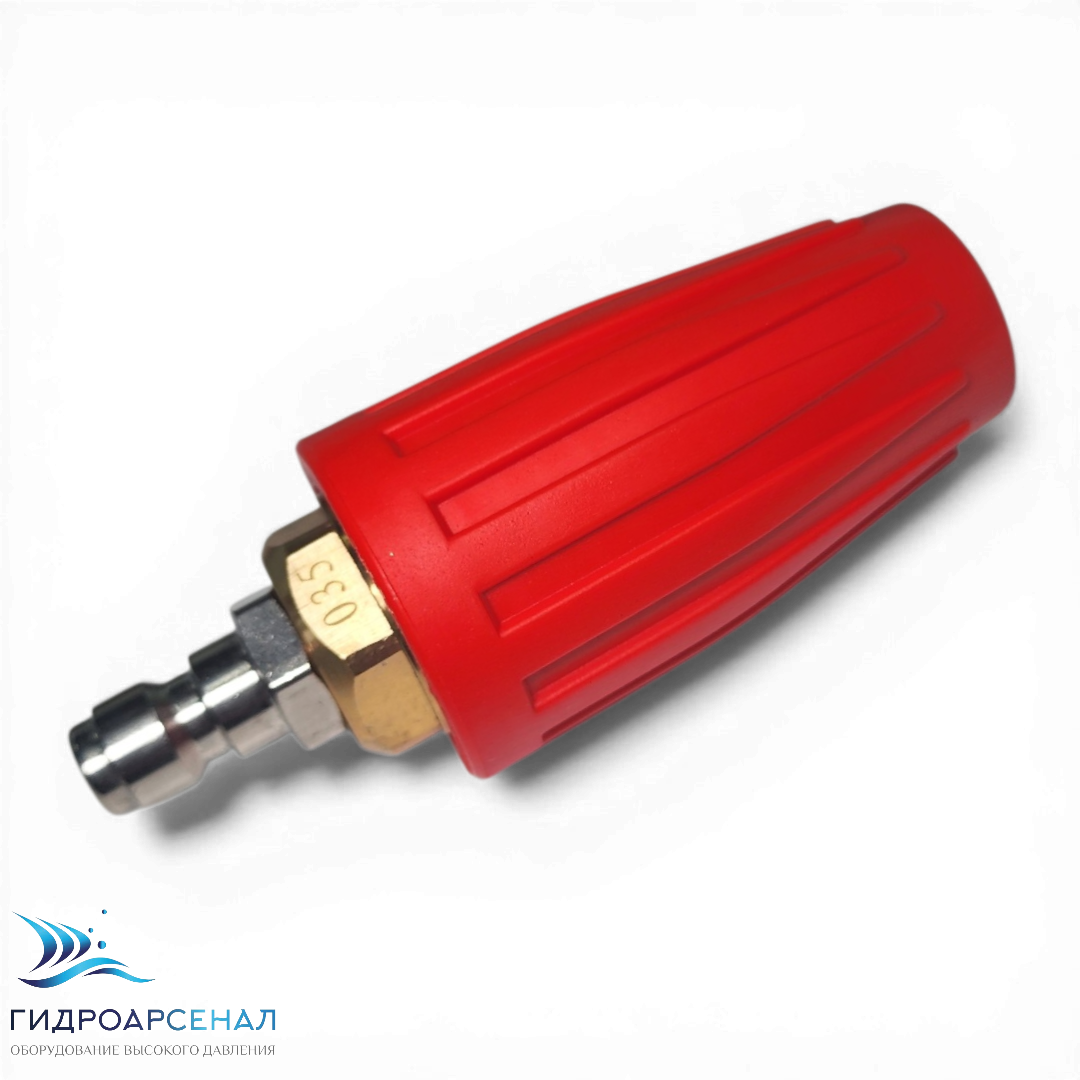 Грязевая фреза 035/250 bar (турбобластер)— это роторная насадка, которая формирует вращающуюся струю воды под высоким давлением, которая воздействует на поверхность намного сильнее, чем обычная веерная, поэтому грязь отмывается быстрее.