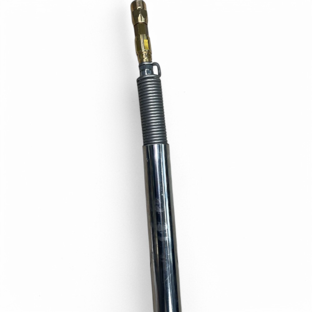 Жесткая пружина из прутка d4 н/ж AISI 304, с высоким возвратным свойством, обеспечивает сохранность внутреннего шланга высокого давления (2SN8 400bar Италия) от растягивания при работе, спиральная защита внутри пружины защищает шланг в.д. от перетирания.