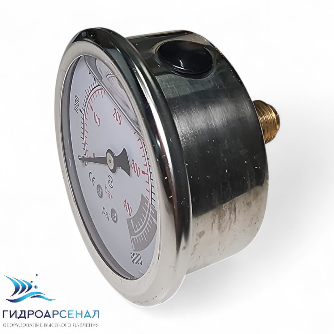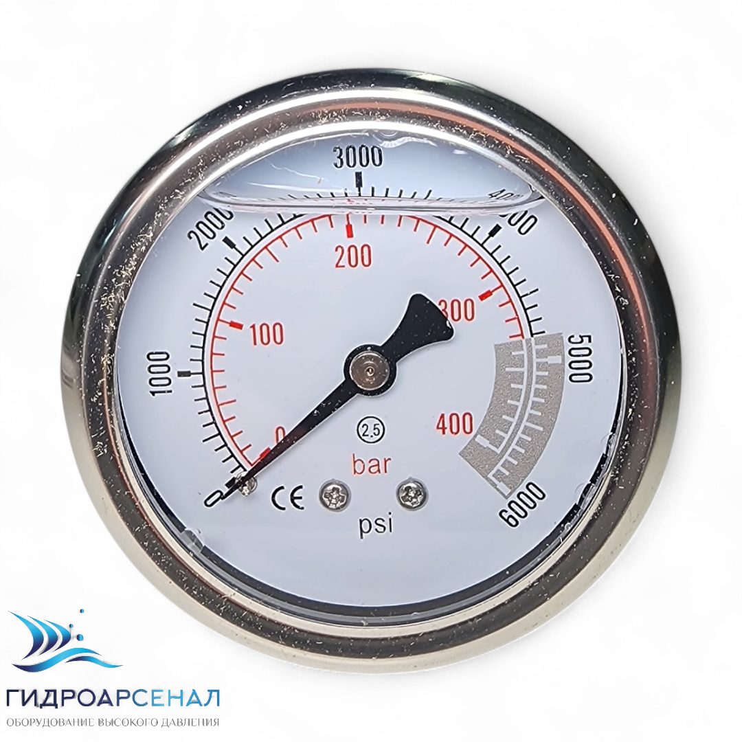 Заполнен глицерином для снижения вибрации и пульсации при работе АВД.