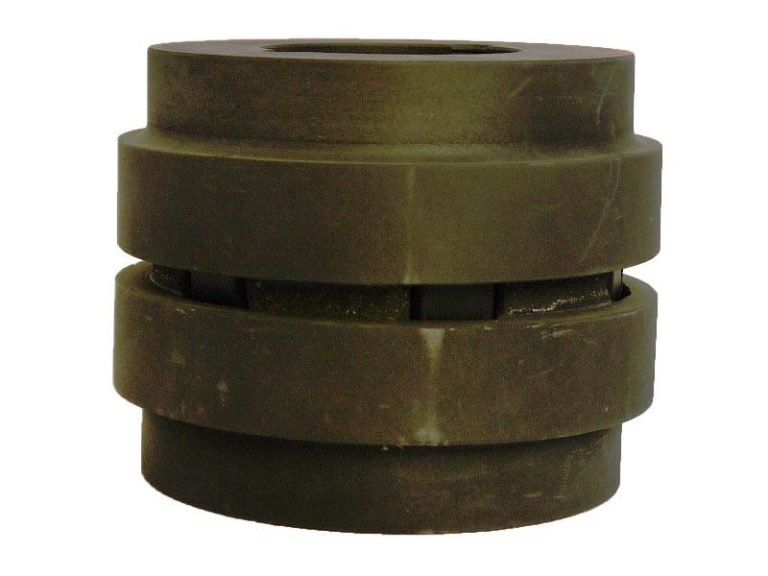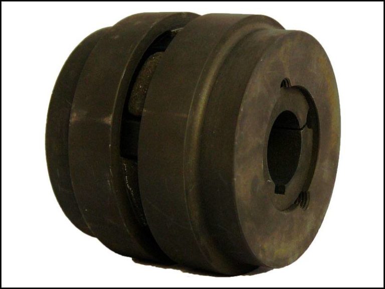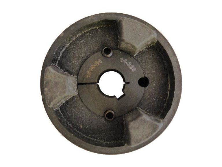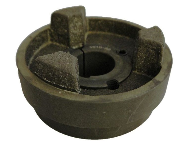 Упругая кулачковая муфта HRC F110 под валы насоса диаметром 24мм и валом электродвигателя — 38 мм. Материал полумуфт — чугун. Звездочка изготовлена из антистатического полимера. Муфта рассчитана на передачу номинальной мощности до 11 кВт при скорости вращения вала до 3000 об/мин.