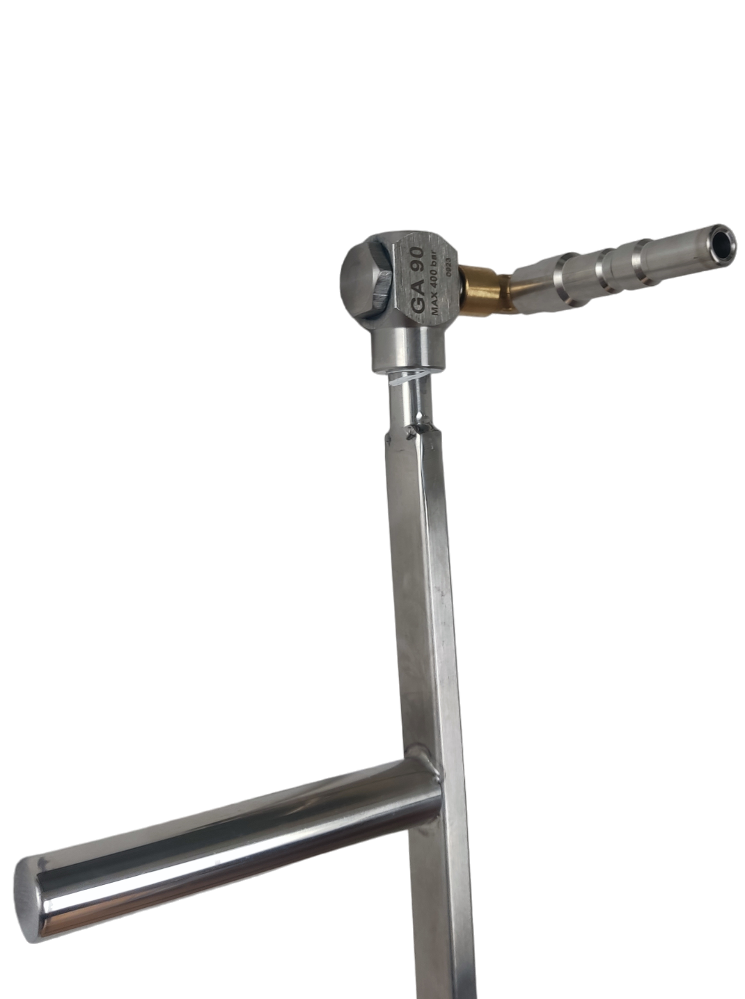 Насадка состоит из профильной трубки нерж. с 7 плоскими отверстиями, поворотного фитинга высокого давления (для удобства работы с насадкой) и ниппеля БРС для подсоединения к пистолету АВД.