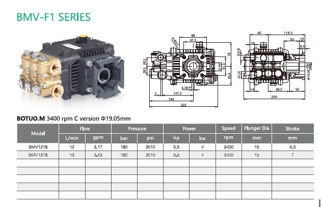 Данный насос является новейшей разработкой завода Botuolini, прошедший все тестовые испытания и поступивший в широкую мировую продажу. Данная модель предназначена для сборки автономных аппаратов высокого давления с мощностью двигателя до 6л.с., например АВД Старт Бензо 12/180 нашего производства. Данная модель насоса отлично подходит для установки на бензиновый двигатель GB200 и менее мощные, идеальны для использования в домашний условиях, малых предприятиях, клининговых услуг.