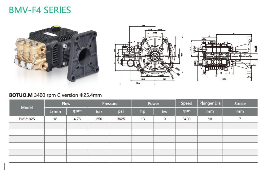 Насос высокого давления для бензинового двигателя BMV 1825-C25.4 (18 л/мин 250 бар, 3400 об/мин) полый вал D25.4