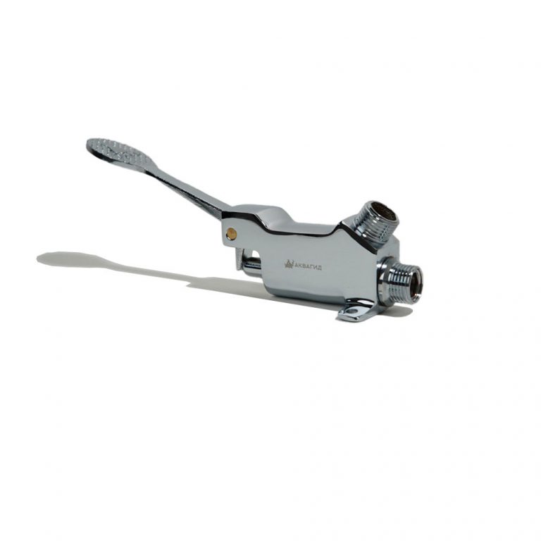 Педаль представляет собой механический запорный клапан, который открывает или закрывает поток воды на рукомойнике самообслуживания. При нажатии на педаль клапан открывается, вода поступает в раковину рукомойника. Педаль отпустили, клапан закрылся, вода остановилась.