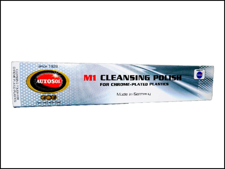 Очиститель и полироль M1 производимая Autosol пригодится для ухода за элитными автомобилями на которых присутствует хромированный пластик. Отполировать радиаторную решётку, молдинг, значок автопроизводителя, кайму вокруг фар становится реально – используя такую пасту M1 (Cleansing Polish). Натирать до блеска хромированный пластик этой пастой не составит труда и не потребует шлифовального оборудования