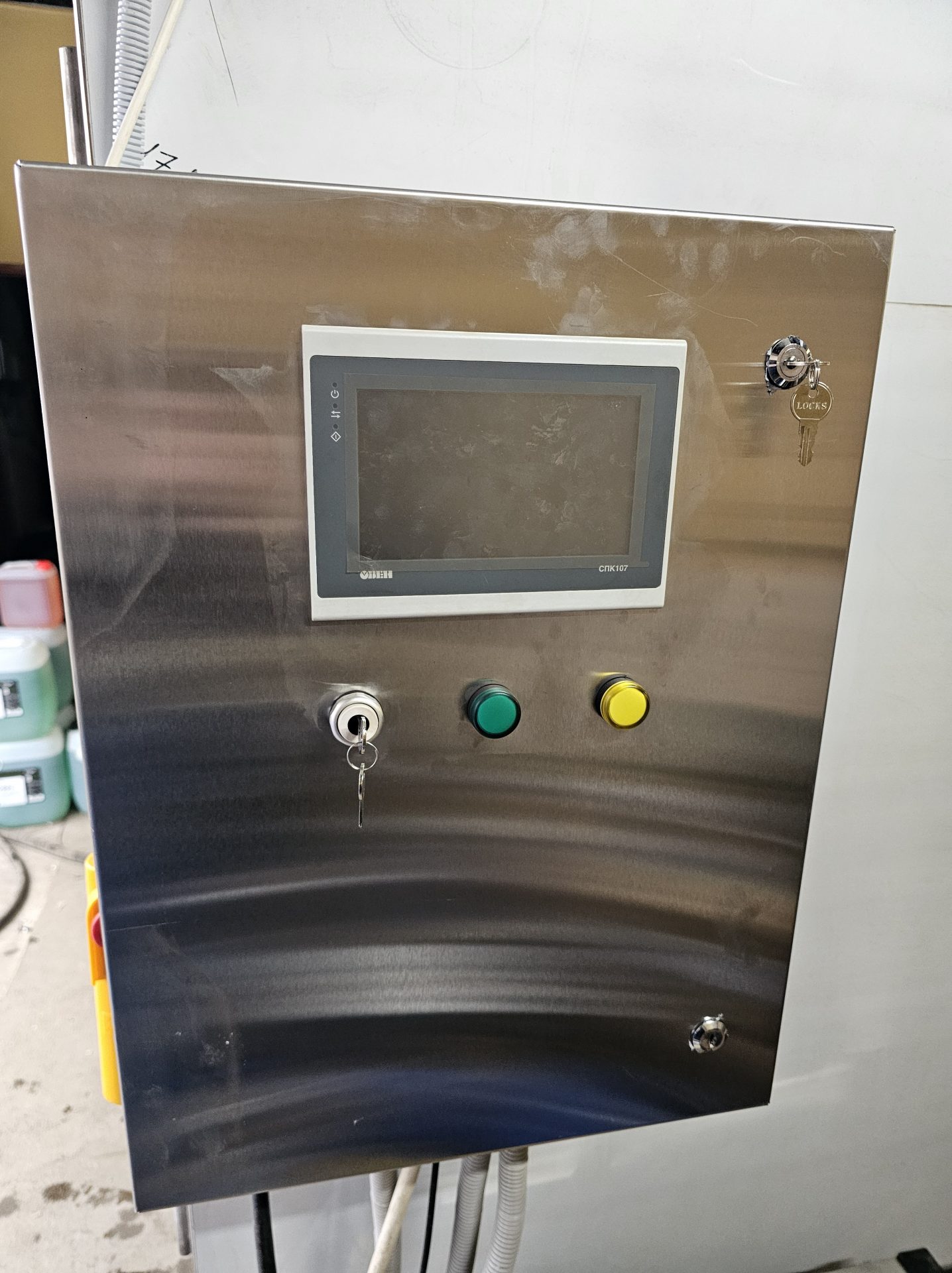 - Пульт управления комплексом с ЖК монитором сенсорного управления. Имеет уникальную собственно разработанную программу мойки емкостей с очень широким функционалом и возможностями настроек. Корпус шкафа из нерж.стали. Доступ к работе шкафа управления только с помощью ключа оператора.
