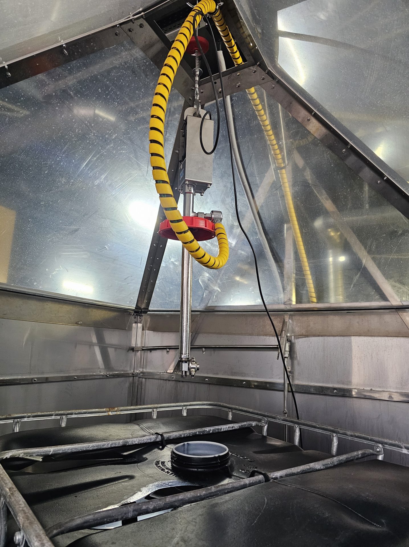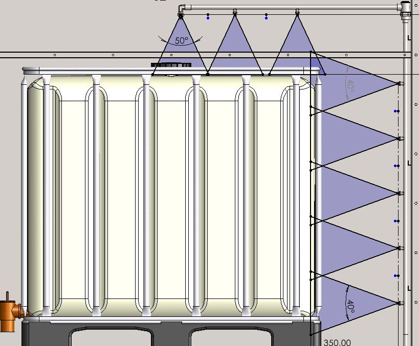 - Форсуночный коллектор поворотный Г-образный из трубы нерж. имеет 8 форсунок равномерно расположенных по всей длине. Благодаря чему струю воды полноценно отмывают все загрязнения сверху и сбоку емкости.