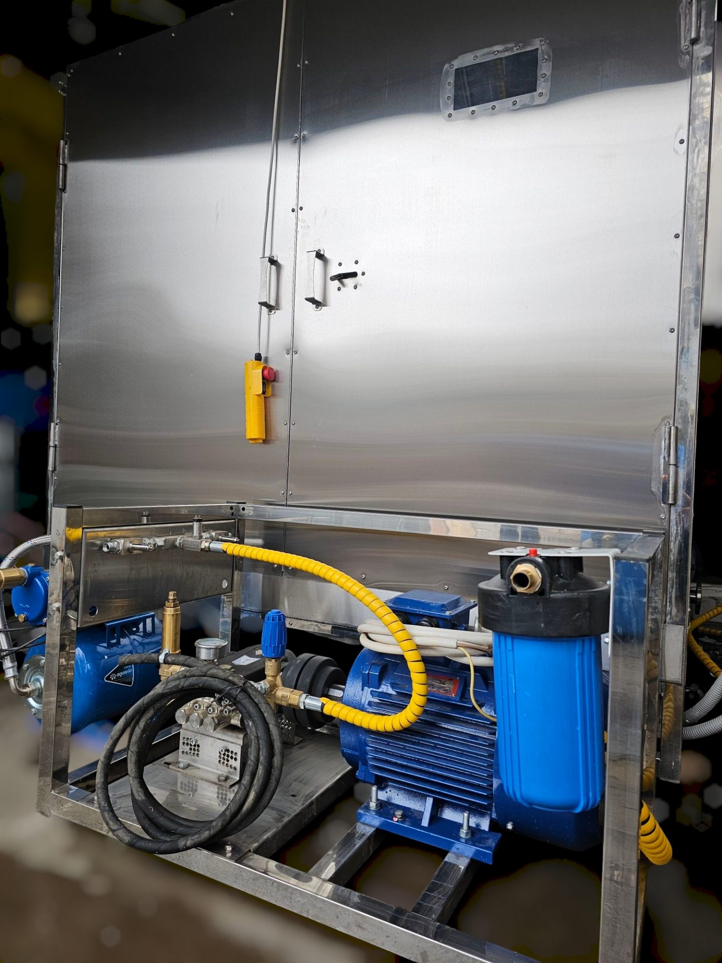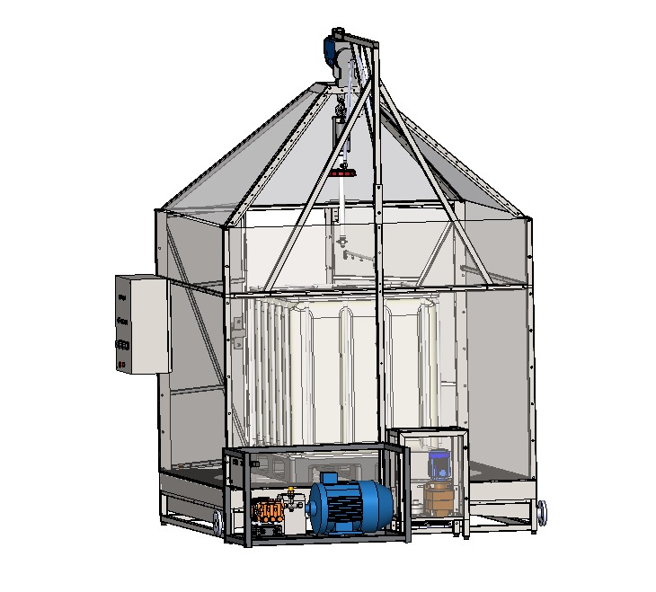Предназначен для автоматической мойки кубических емкостей внутри и снаружи, емкость вращается в двух режимах, комплектация моечными головками и насосным оборудованием подбирается отдельно под каждую задачу.